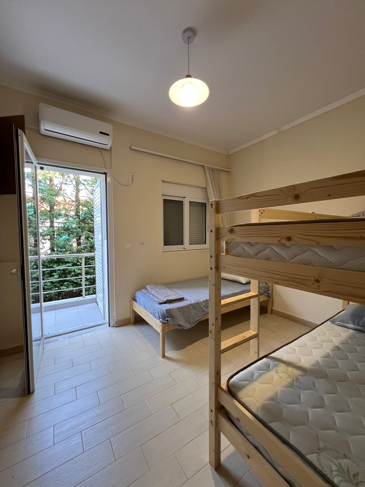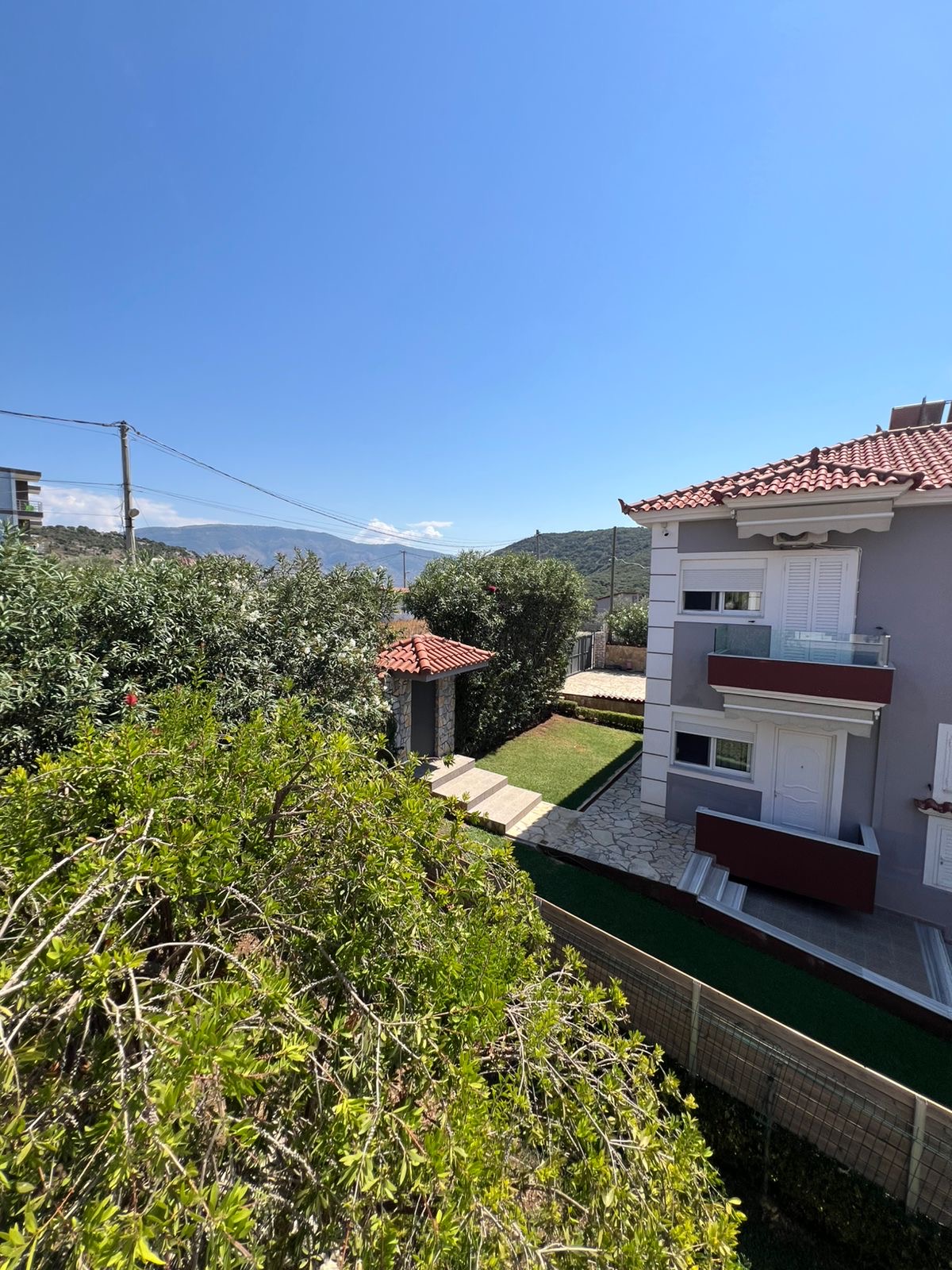 This beautiful villa for rent is located in Ksamil, offering comfort, space, and stunning sea views. Built on a 430 m² plot, the villa is spread across two spacious floors. The first floor, with a surface of 128 m², features two bedrooms, a bathroom, a large living room, and a big balcony perfect for relaxing or entertaining. The second floor covers 89 m² and includes a living room, kitchen, bathroom, bedroom, and a balcony with breathtaking views of the sea. In addition, there is a storage area that adds to the villa’s functionality.