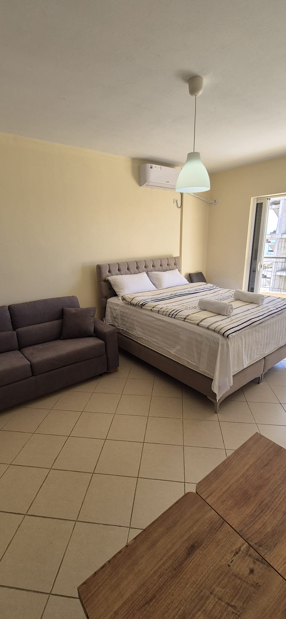 Bright and airy studio apartment in Sarandë, ideally located near the renowned Santa Quaranta resort. This 50 m² home sits on the fourth floor and offers sweeping sea views from its living area and private balcony. Thoughtfully designed for comfort and simplicity, the open-plan interior maximizes space with a modern kitchenette, a cozy sleeping zone, and a well-sized bathroom. Large windows flood the apartment with Mediterranean light while the elevated position ensures peaceful, panoramic vistas. Located in one of Sarandë’s most desirable neighborhoods, residents benefit from easy access to beaches, cafés, and local amenities, yet enjoy a calm residential atmosphere. Perfect as a holiday retreat or rental investment, this property combines convenience, charm, and steady demand in a prime spot. Offered at €100,000, this studio presents exceptional value for buyers seeking proximity to the sea and quality urban living. Contact us today to arrange a viewing and secure this gem.