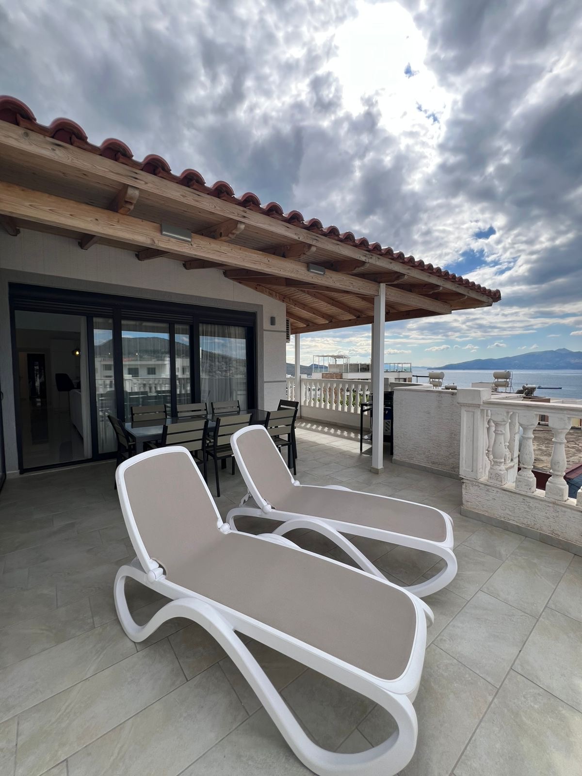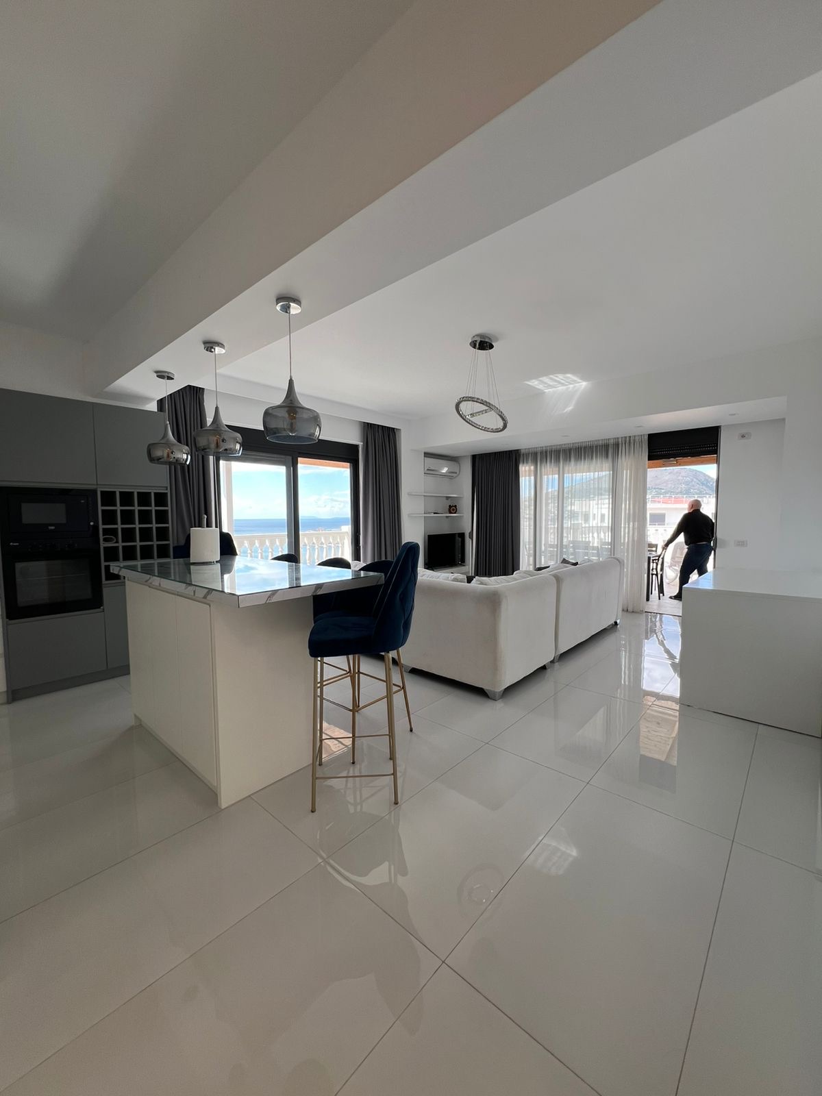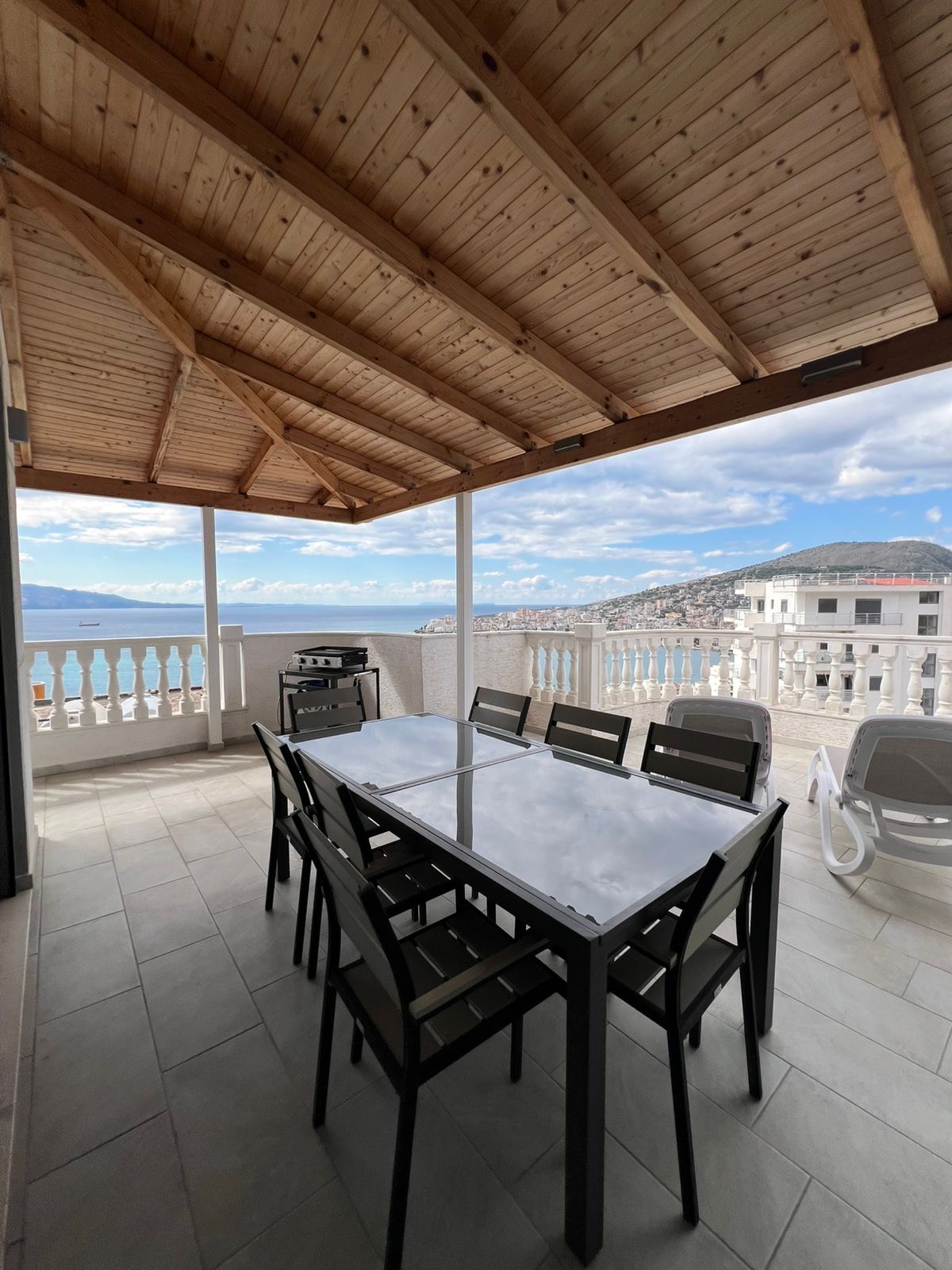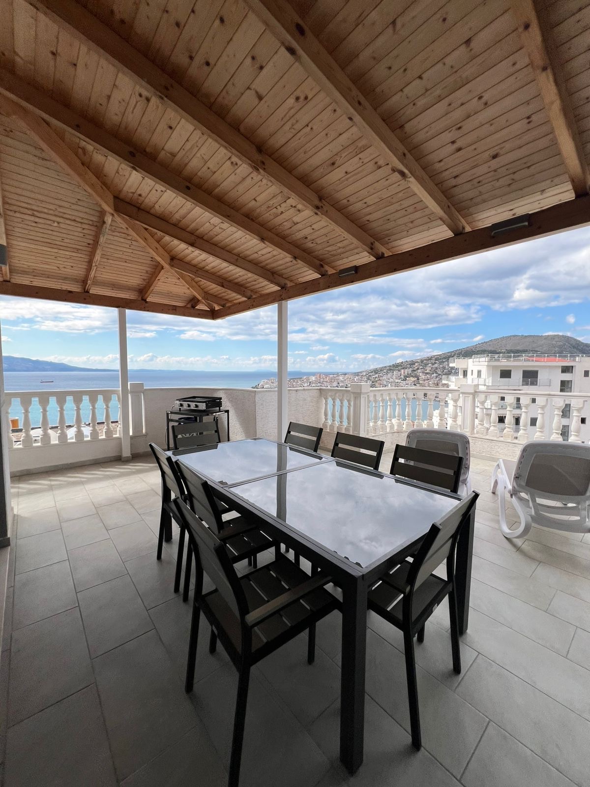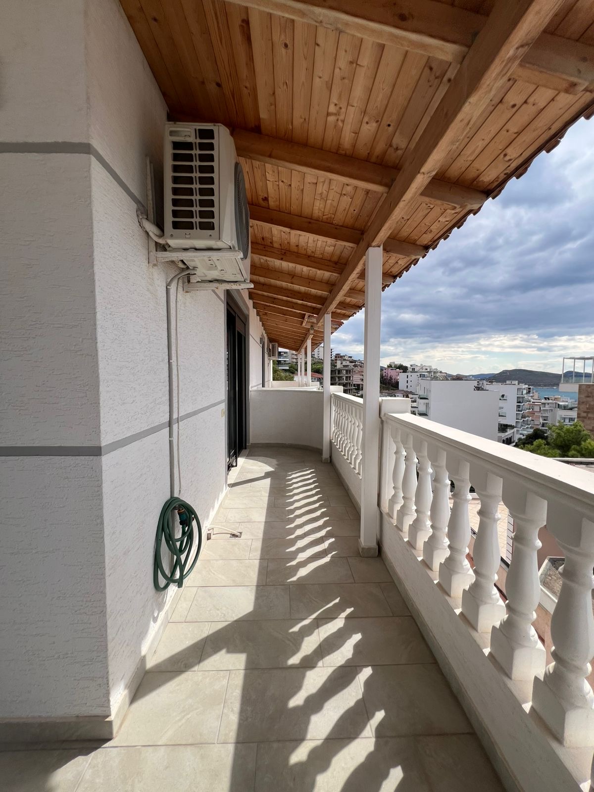 Discover your dream coastal home in this exquisite 146m² penthouse located on Rruga Skënderbeu, one of Saranda’s most desirable addresses. Situated on the 6th floor, this fully furnished residence combines modern comfort with breathtaking sea views from every angle. The spacious living room opens onto three private balconies, perfect for relaxing or entertaining while enjoying the Ionian sunset. With two elegant bedrooms and two contemporary bathrooms, this home offers the ideal blend of style and functionality. High-end finishes, abundant natural light, and tasteful décor create a warm, inviting atmosphere. Move-in ready and impeccably maintained, this property is perfect as a permanent residence, vacation home, or investment opportunity.