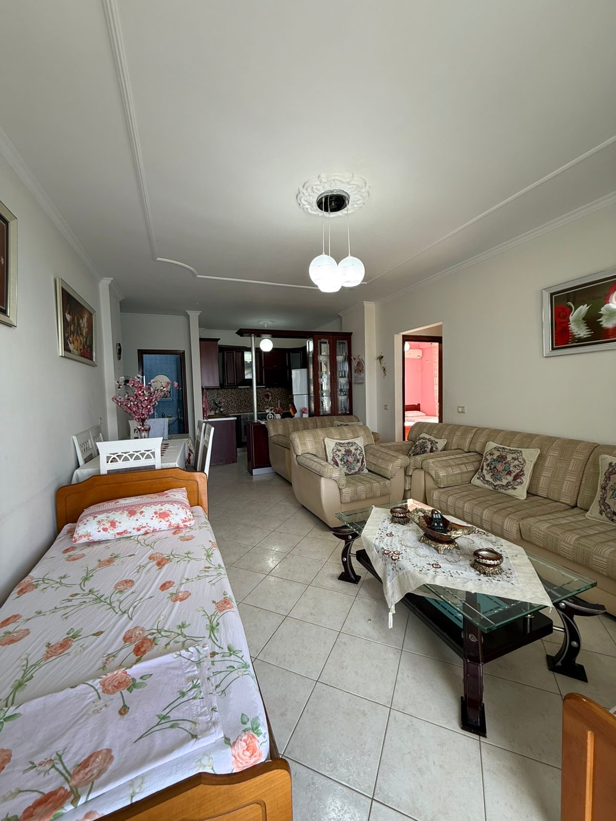 Spacious and bright 95m2 apartment located on Gjergj Arianiti Street, offering comfort and convenience. The property features two well-sized bedrooms, two modern bathrooms, a cozy living room, and a fully equipped kitchen. It comes fully furnished with stylish and functional pieces, ready for immediate move-in. Enjoy a stunning sea view from the apartment, creating a relaxing atmosphere. Situated in a desirable area, it provides easy access to local amenities, shops, and transport. Monthly rent is 550€, making it an excellent choice for comfortable city living. Perfect for families, couples, or professionals seeking quality, space, and a beautiful coastal lifestyle today.